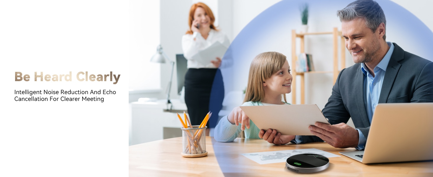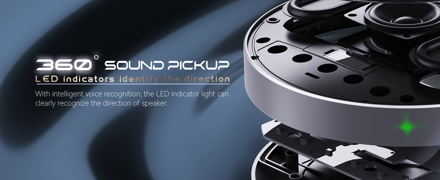 Escuche y sea escuchado con un micrófono de 360-grado que capta sonidos desde cualquier ángulo.